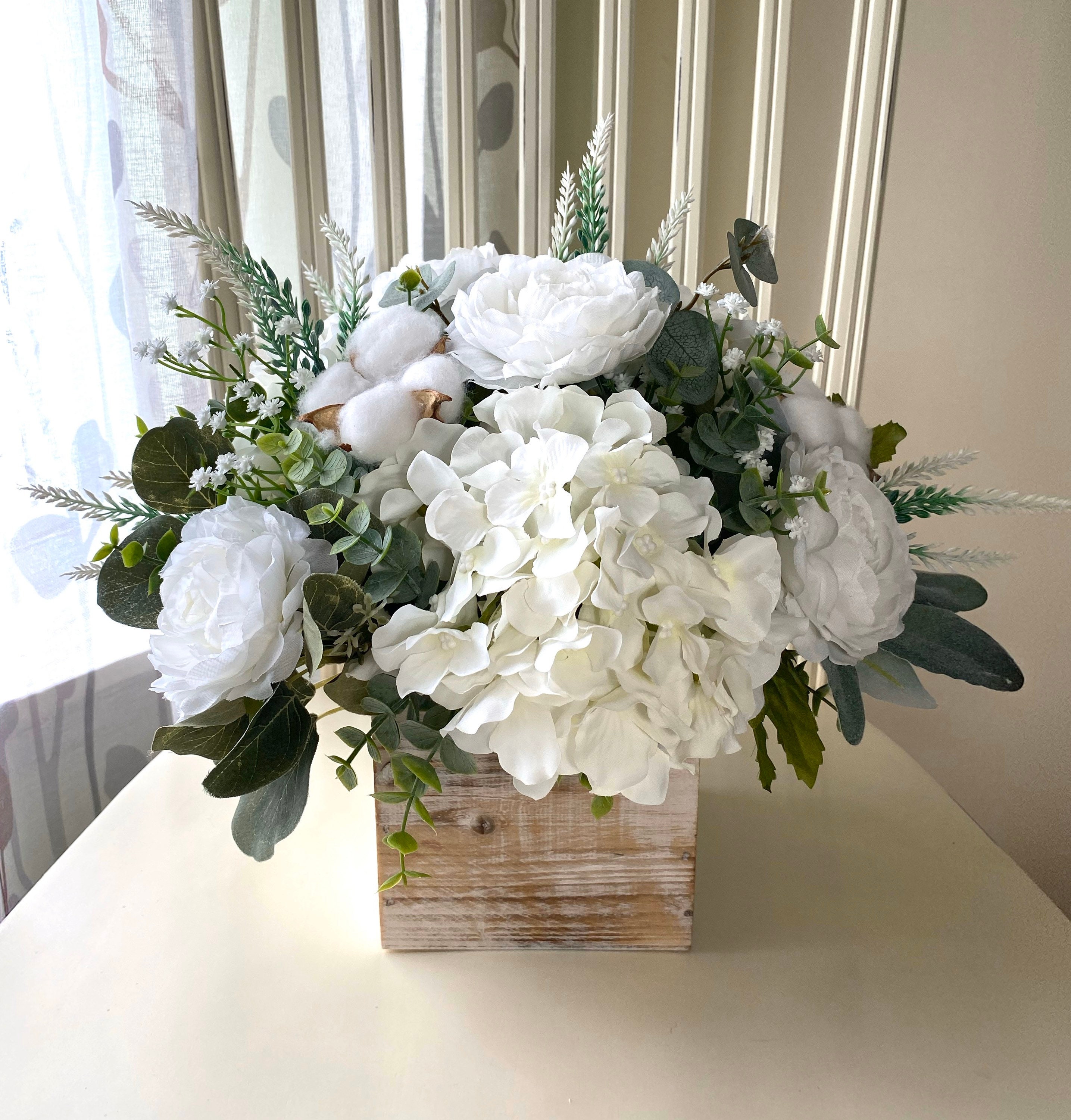 White Floral Centerpiece For The Table Rustic Neutral Flower Etsy